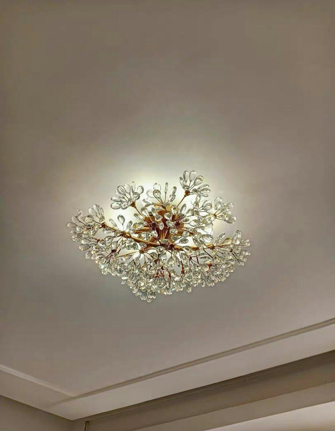 Zu den Merkmalen der halbbündigen Deckenleuchte Gold Französisch Messing Kristall Blume gehören: