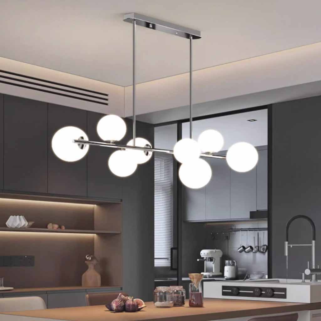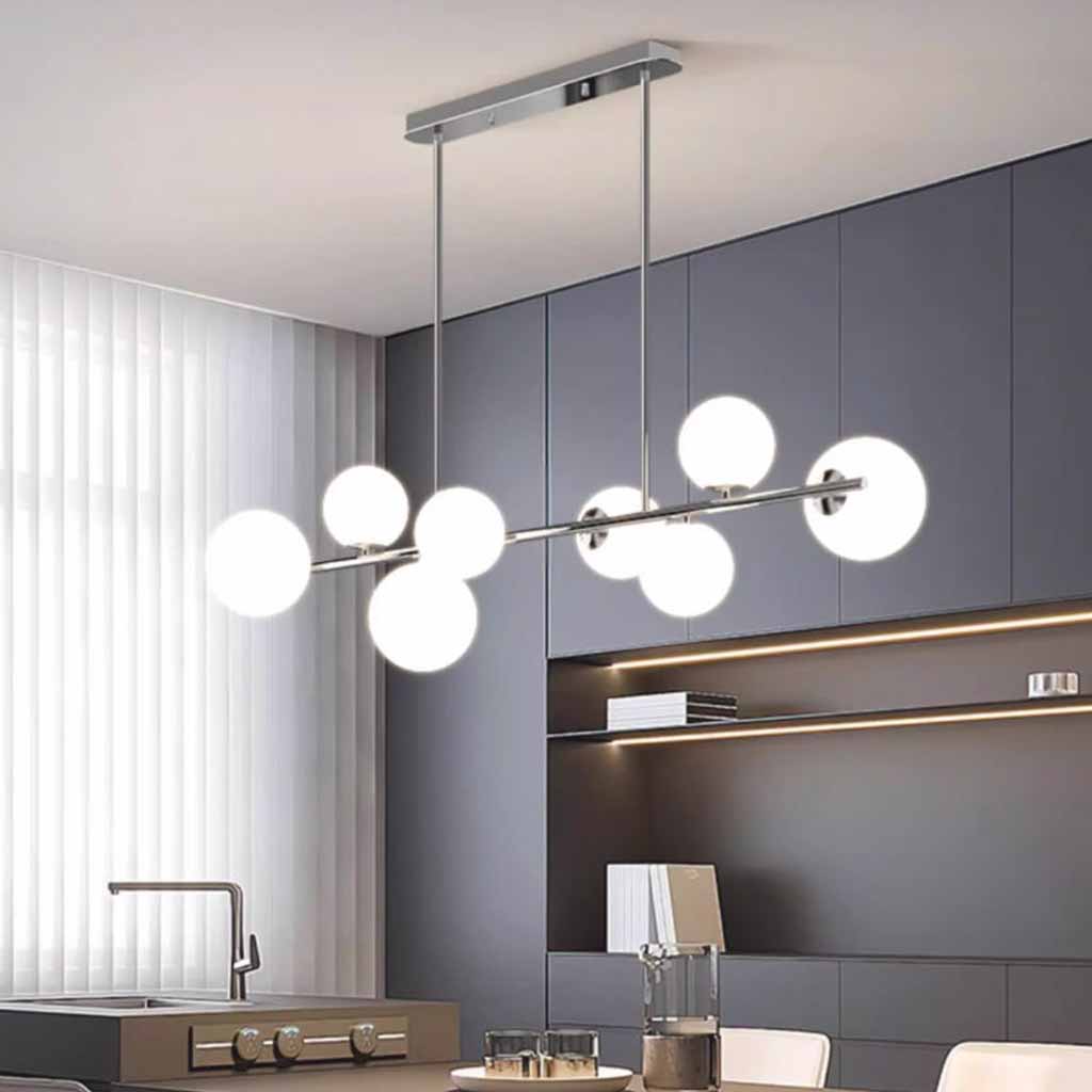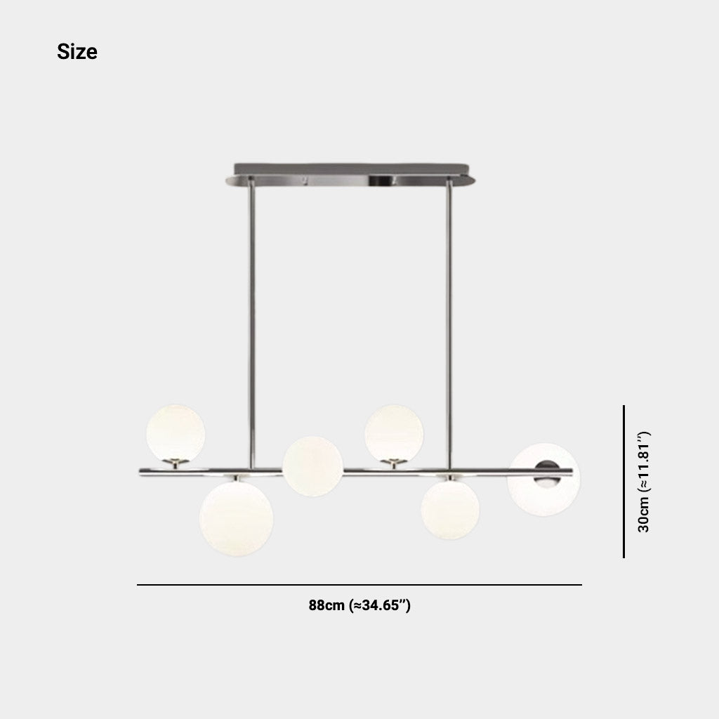 | Tamaño | 6 globos: L88cm*H30cm / L34.65'' x H11.81'' (41W) 8 globos: L120cm*H30cm / L47.24'' x H11.81'' (56W) Tamaño del globo pequeño: Dia12cm / Dia4.72'' Tamaño del globo grande: Dia15cm / Dia5.91'' Placa de techo: L55cm*W8cm*H4cm / L21.65'' x W3.15'' x H1.57'' Varilla para colgar ajustable 60 cm / 23,62 '' |