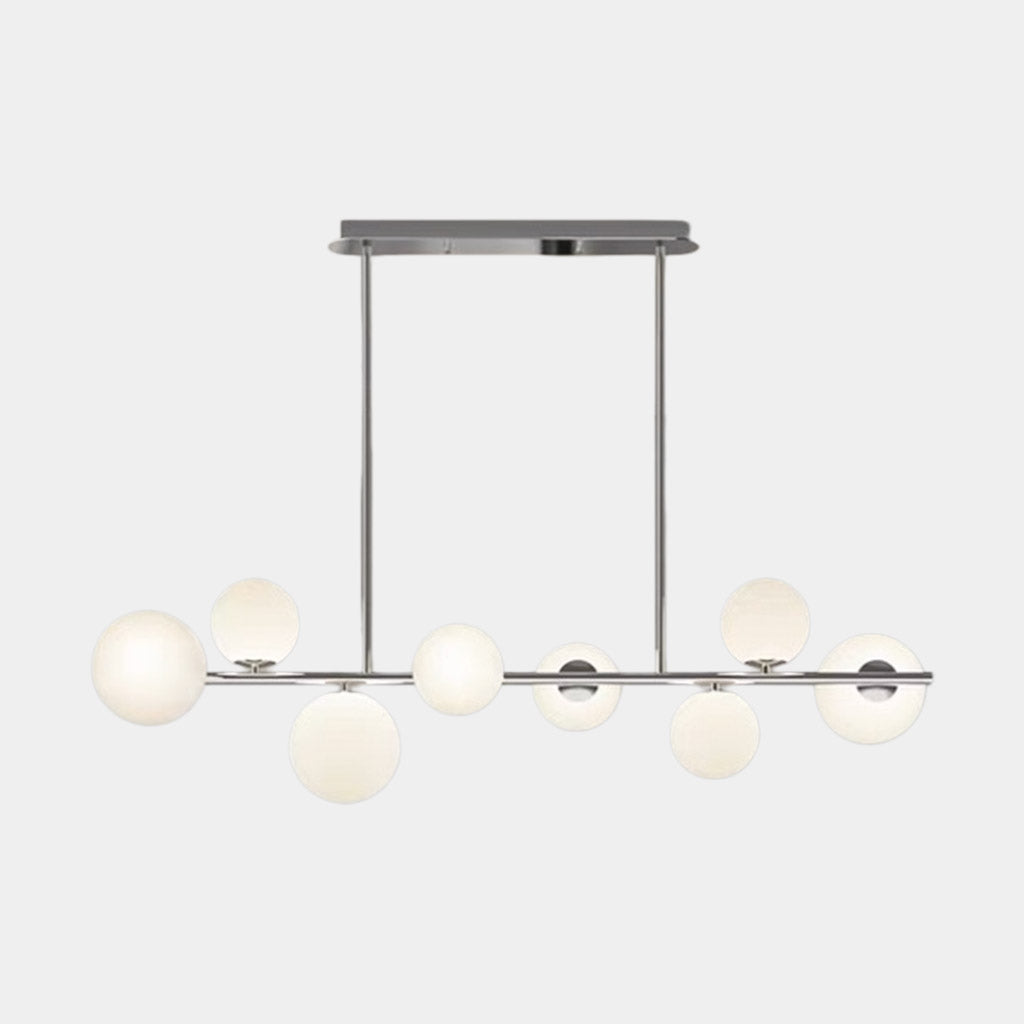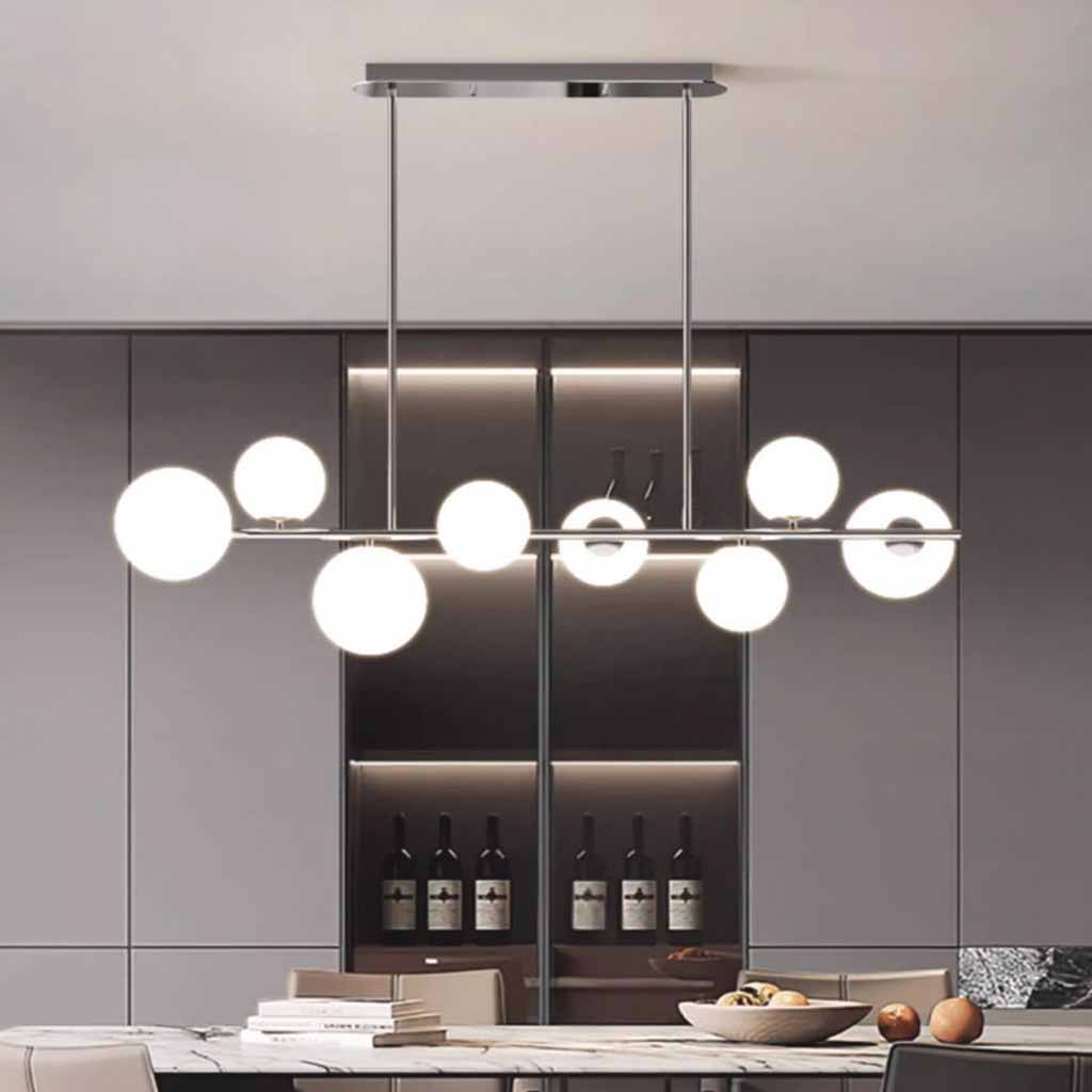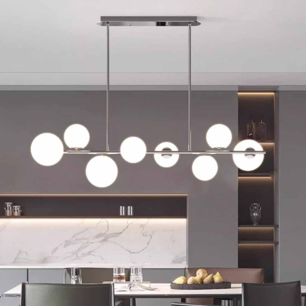 | Tamaño | 6 globos: L88cm*H30cm / L34.65'' x H11.81'' (41W) 8 globos: L120cm*H30cm / L47.24'' x H11.81'' (56W) Tamaño del globo pequeño: Dia12cm / Dia4.72'' Tamaño del globo grande: Dia15cm / Dia5.91'' Placa de techo: L55cm*W8cm*H4cm / L21.65'' x W3.15'' x H1.57'' Varilla para colgar ajustable 60 cm / 23,62 '' |