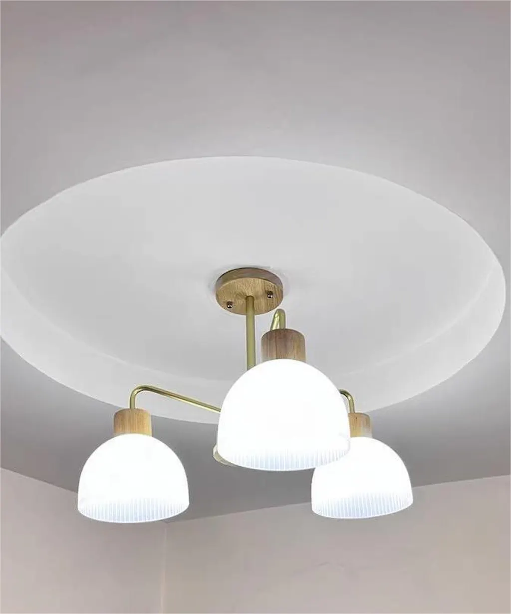 Les caractéristiques du plafonnier moderne en verre et bois pour le salon comprennent :