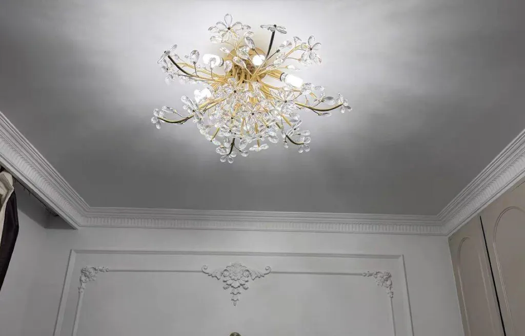Beautiful light fixture and excellent customer service! I contacted them before ordering to confirm the size for my bedroom, and they were very helpful. The assembly was straightforward, and the quality of the brass and crystal is top-notch. It looks even better in person than in the photos. Very happy with this purchase.