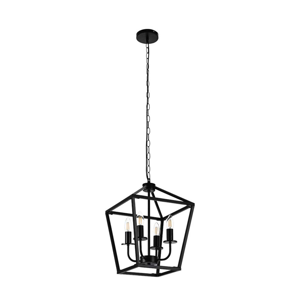 > Ez az ipari csillár négy izzót tartalmaz egy nyitott kocka keretben, hogy megkülönböztető rusztikus hangulatot hozzon létre.