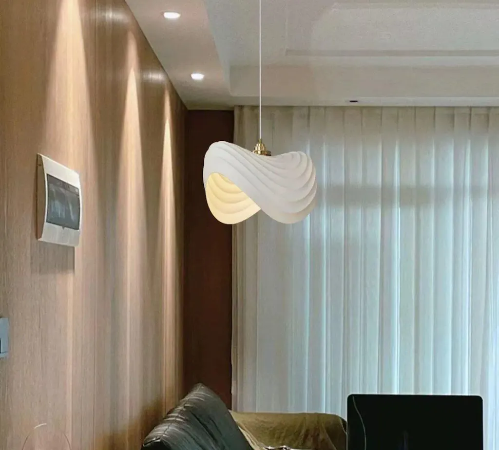 > De lampenkap wordt gekenmerkt door gelaagde rondingen, toont vloeiende elegantie en werpt prachtig licht en schaduw.