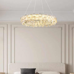 The albaster chandelier looks so beautiful. We love the natural texture of the marble sheets.