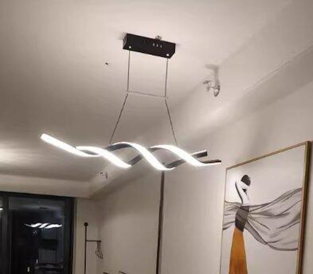 I bought this to replace an old, dated fixture in our living room. It immediately modernized the entire space. The linear helix shape is very sleek and minimalist. The remote makes it easy to dim it down. Overall, a 5-star product for the design and quality.
