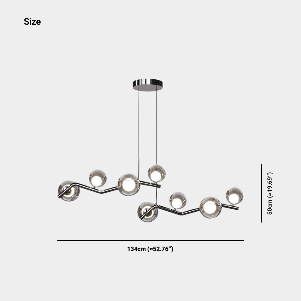 | Size | L134cm*H50cm / L52.76'' x H19.69'' (72W) Small Globe Size: Dia12cm / Dia4.72'' Large Globe Size: Dia15cm / Dia5.91'' Ceiling Plate: Dia22cm*H3.5cm / Dia8.66'' x H1.38'' Adjustable Hanging Wire 150cm / 59.06'' |