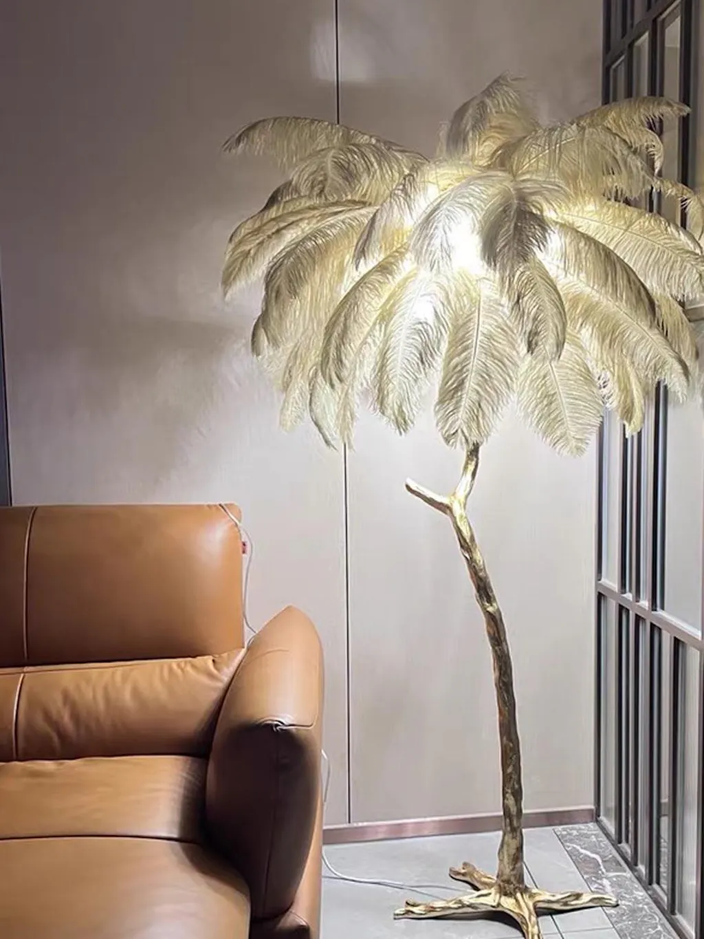 > The floor lamp looks like a palm tree, ideal decoration for your indoor space.