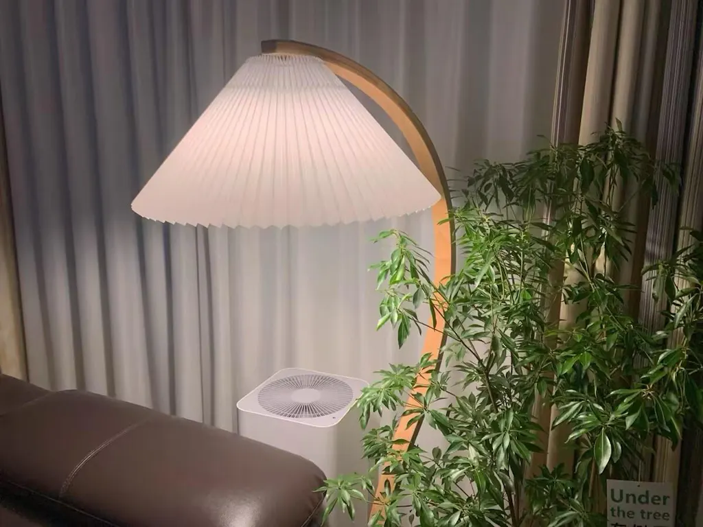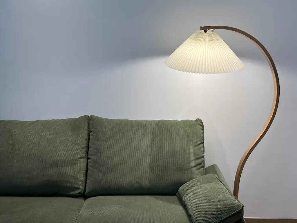 Features of Modern Arched Curved Wooden Pleated Shade Floor Lamp include: