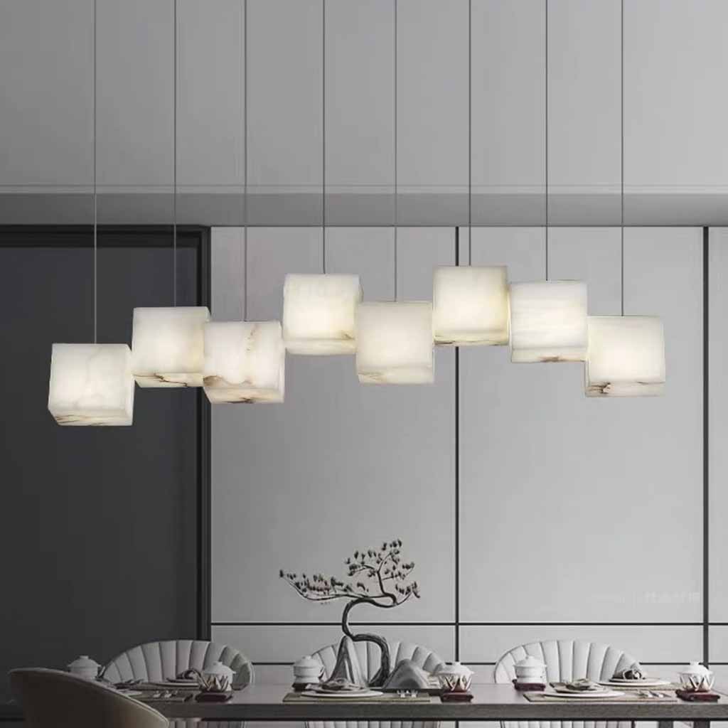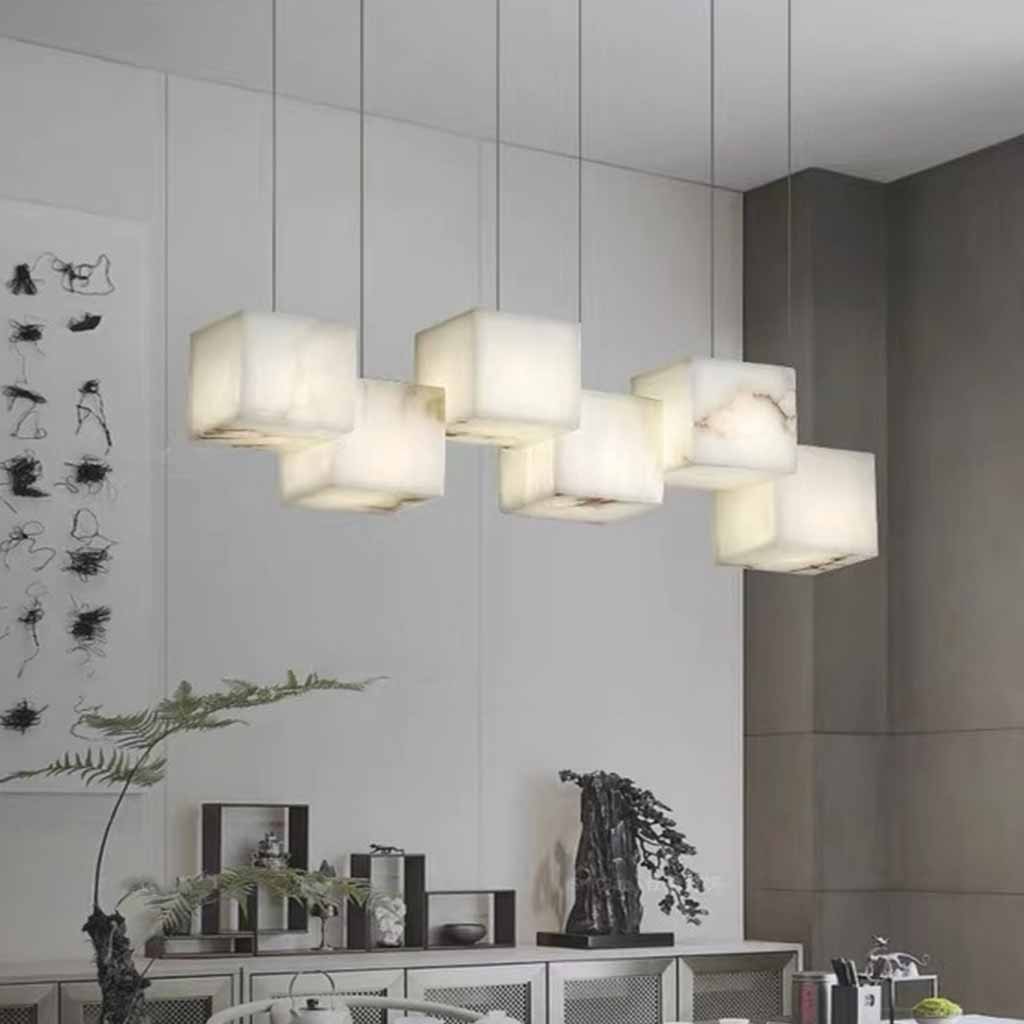 The albaster chandelier looks so beautiful. We love the natural texture of the marble sheets.