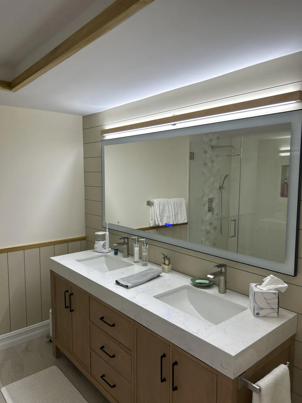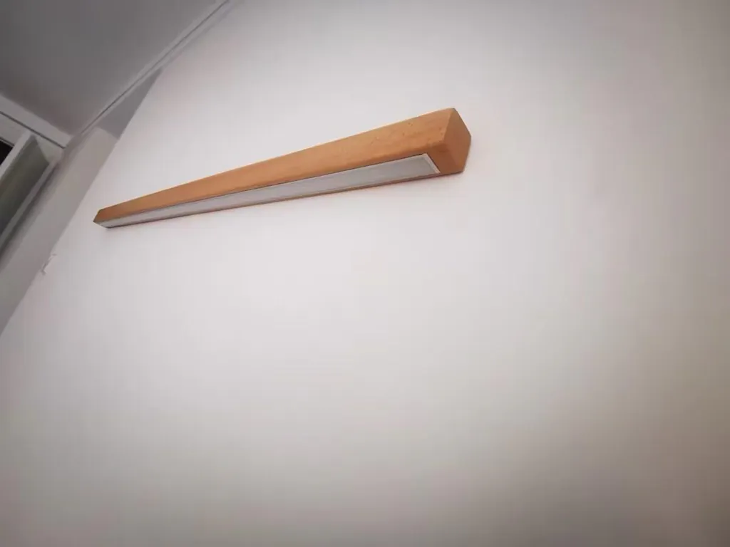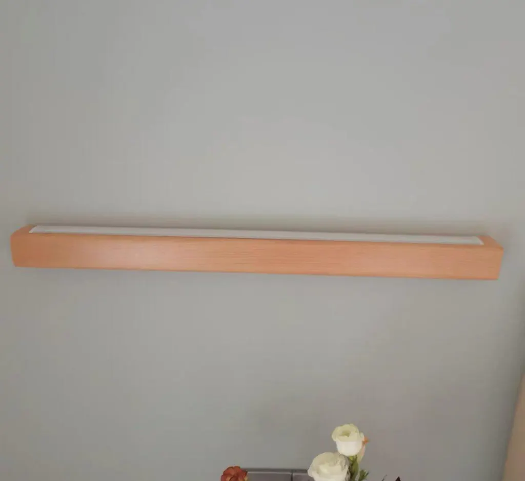 Ik vind dat deze houten, lineaire wandlamp van goede kwaliteit is. Ik hou van de natuurlijke houtstructuur.