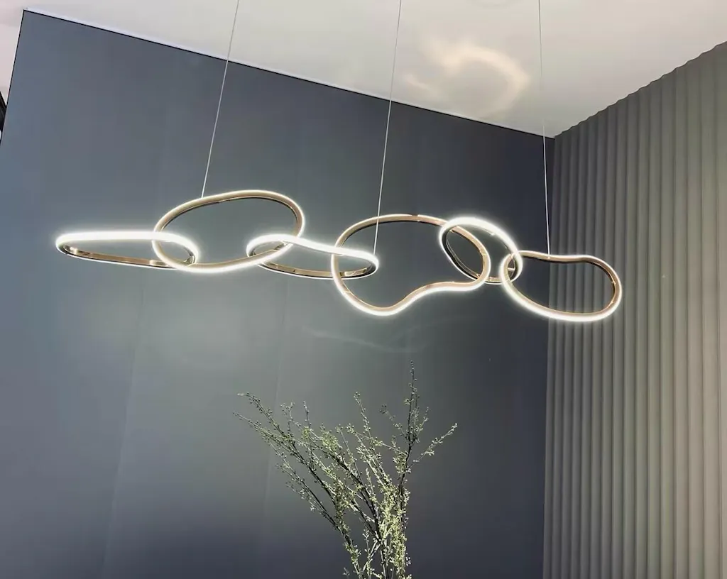 > Ljuskronans vinklar kan justeras fritt med oregelbundna ringar kopplade ihop, Och du kan enkelt styra ljuset.