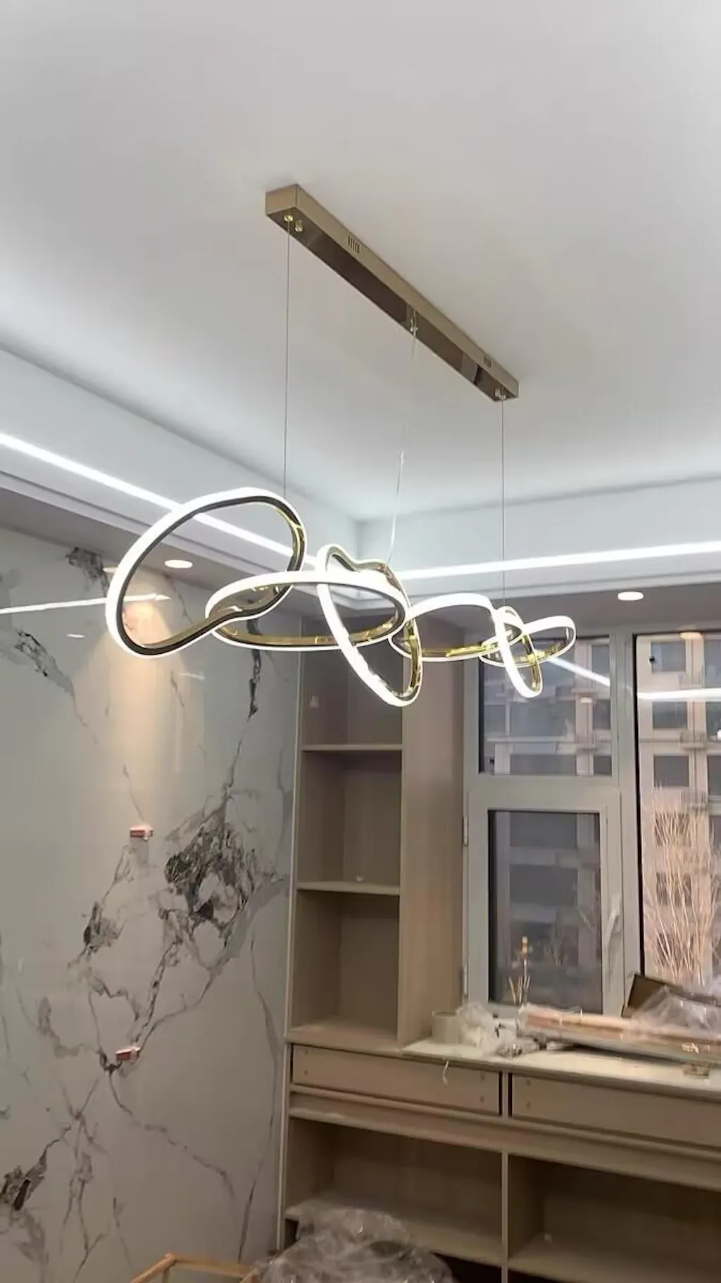 Had my kitchen redone and was looking for a modern gold chandelier for my island that was long. I found a few online but most were not bright enough. Stumbled up this and it was perfect.